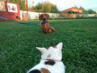 Кошка Шкода помогает обучать собак в коломенском дрессировочном центре