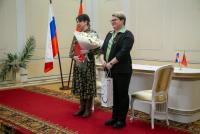 Ирина Викторовна передала молодожёнам поздравление от главы округа Александра Гречищева и подчеркнула: Иван и Виктория связали себя узами брака в Год Семьи, что очень символично.