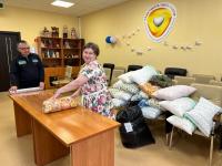 С отправкой готовых посылок в новые регионы страны Центру помогают активисты волонтерского движения Озер. Свой вклад о общее доброе дело вносят и жители города: они приносят в швейную мастерскую ткань, из которой создаются изделия. Чаще других своими запасами хлопка и ситца делятся пожилые люди.