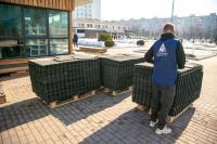 Каток работал до 20 марта, на следующий день начался демонтаж. Сотрудники компании «Студеный лед» снимают иллюминацию, убирают световые мачты, борта, здание раздевалки и проката. Завершить работы планируется к 10 апреля.
