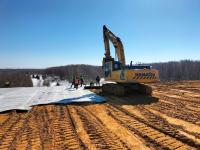 Работы ведет подрядная организация ООО «ТЕХНОКОНЦЕПТ». По данным специалистов, на сегодняшний день полностью сформировано тело полигона, завершено устройство армогрунтовой стены и противофильтрационной завесы. На завершающей стадии находится устройство систем сбора фильтрата и поверхностных стоков. Более чем на 85% выполнены работы по созданию защитного экрана и системы дегазации.