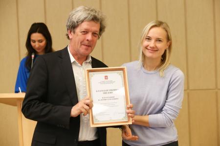 Председатель Общественной палаты Московской области вручил Благодарственные письма Ларисе Зверевой, Наталье Ли-Чан-Лин, Игорю Огурцову, Вячеславу Панькину, Сергею Чухову.