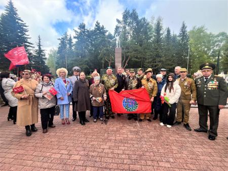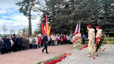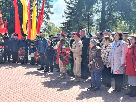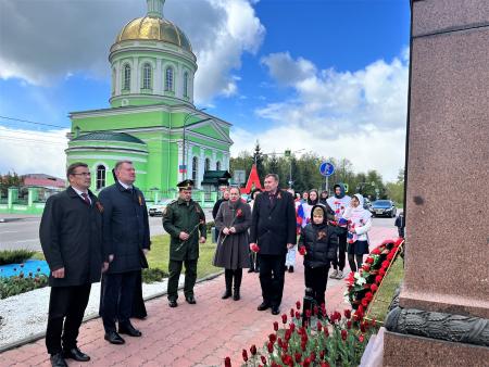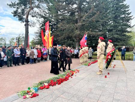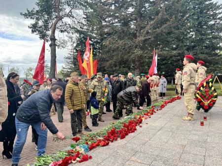 Участники митинга прошли через аллею героев к Вечному огню. В память о погибших воинах была объявлена минута молчания. К мемориалу возложили венки и цветы.