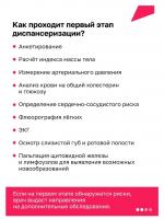 Диспансеризация проводится в два этапа. Подробный перечень проводимых исследований в зависимости от пола и возраста опубликован на сайте Коломенской больницы (https://lpu.zdrav.mosreg.ru/gbuz_mo_kolomenskaya_boln..). Электронная запись для пациентов доступна в личном кабинете портала «Здоровье» или по единому номеру 122.