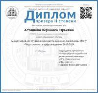 Призёром II степени стала пятикурсница Вероника Асташова. Четверокурсник Никита Лебедев стал призёром III степени. Руководителем ребят выступила Мария Николаевна Кадыкова, являющейся доцентом кафедры педагогики.
