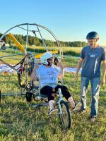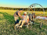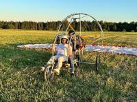 В роли пилота выступил Глеб Шахнович, автор проекта «Глазами птиц». Он по очереди прокатил на мотопараплане самых отважных озерских долголетов. Теперь в копилке впечатлений участниц клуба есть и такое незабываемое путешествие.