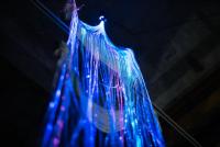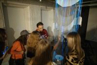 Эта талантливая художница потратила почти полтора месяца на создание уникальной текстильной инсталляции, включающей в себя два арт-объекта: зонт из ткани, сделанный вручную из оптоволокна с использованием прозрачных трубочек, из которых струится вода, и полотно, в которое вплетены светящиеся нити. В стенах музейной лаборатории посетители могут насладиться необычными и креативными произведениями искусства, представленными на этой выставке.