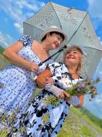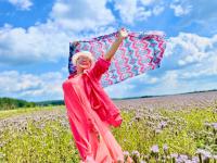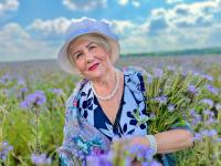 Фотосессия участников губернаторского проекта «Активное долголетие» из Озер прошла на живописной реке, окруженной пышными полями цветов фацелии.