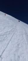 Как рассказал спортсмен, восхождение усложнялось погодными сюрпризами. Температура воздуха опустилась до -15°С, а из-за сильного холодного ветра ощущались все -25°С.