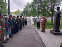 В Коломне ветераны-десантники и действующие военнослужащие возложили цветы к памятнику коломенцам, павшим в локальных войнах и военных конфликтах, и к мемориальному бюсту Героя России Виктора Романова, погибшего в Чечне в составе 6-й роты 104-го парашютно-десантного полка.