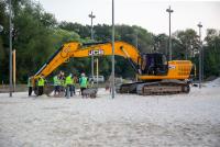 Сейчас на Коломенке работают специалисты по озеленению и ландшафтному дизайну – высаживают прибрежную растительность, разбивают цветники, отсыпают плодородный грунт для газона. Параллельно строители продолжают обустраивать фундаменты под лавочки, скамейки, урны, волейбольные стойки, судейские вышки, монтируют свайное поле для установки павильонов, устанавливают игровые элементы детского городка.