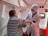 Перед прививкой всех пациентов осмотрел фельдшер. По итогам выезда 35 человек прошли вакцинацию от сезонного гриппа и 12 человек из них дополнительно сделали прививку от пневмококковой инфекции.