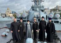 Флагман Тихоокеанского флота, гвардейский ордена Нахимова ракетный крейсер «Варяг» посетила делегация священнослужителей Русской Православной Церкви во главе с Патриаршим наместником Московской митрополии - митрополитом Крутицким и Коломенским Павлом.