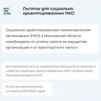 - Социально ориентированные НКО освобождены от уплаты налога на имущество организаций и от транспортного налога.