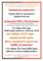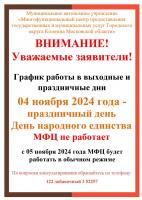 График работы МФЦ и ЦМФЦ в Коломне в предпраздничные и праздничные дни ноября