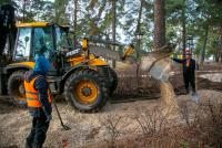 Ежедневно в парке работает строительная бригада из восьми человек, также задействовано несколько единиц техники. Завершить капитальный ремонт пешеходных дорожек в «Дубках» планируют в декабре.