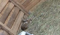 «Симба появился у нас совсем недавно и очень неожиданно. Нам позвонили и спросили, не хотим ли мы взять кота сервала, так как его собрались усыплять. Меньше чем за день мы поставили временный вольер и забрали Симбу к нам», — рассказывает сотрудница фермы Алина Тлеукулова.