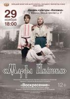 В рамках Международного форума, посвященного развитию деятельности по сохранению нематериального этнокультурного достояния народов России, во Дворце культуры «Коломна» пройдет спектакль «Марфа Ивановна» в исполнении артистов Липецкого областного центра культуры, народного творчества и кино с участием фольклорного ансамбля.