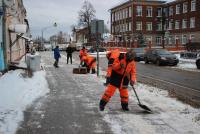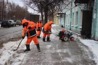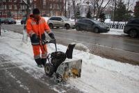 Дороги и тротуары в Коломне и Озёрах расчищают от снега с помощью машин и ручной техники.