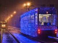 Несколько сотен метров новогодних гирлянд ушло на украшение одного коломенского трамвая. Два новогодних вагона вышли на линию в МУП «Коломенский трамвай». Оценить их праздничный вид жители могут в вечернее время суток.