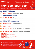Парк «Сосновый бор» (Озёры) — среда, 22 января, и четверг, 23 января, с 15.30 до 16.00; воскресенье, 26 января, с 11.00 до 12.20.