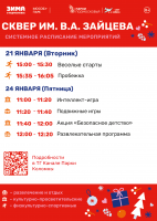 Сквер имени В. А. Зайцева (Коломна) — вторник, 21 января, с 15.00 до 16.05; пятница, 24 января, с 11.00 до 12.20.