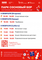 Парк «Сосновый бор» (Озёры) — вторник, 4 февраля, и среда, 5 февраля, с 15.30 до 16.00; суббота, 8 февраля, с 11.00 до 12.20.