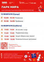 Парк Мира (Коломна) — среда, 12 февраля, с 15.00 до 16.00; суббота, 15 февраля, с 11.00 до 12.20.
