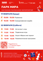 Парк Мира (Коломна) — среда, 19 февраля, с 15.00 до 16.00 и суббота, 22 февраля, с 11.00 до 12.20.