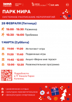 Парк Мира (Коломна) — пятница, 28 февраля, с 15.00 до 16.00; суббота, 1 марта, с 11.00 до 12.20.