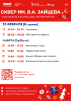 Сквер имени В. А. Зайцева (Коломна) — вторник, 25 февраля, с 15.00 до 16.00; суббота, 1 марта, с 11.00 до 12.20.