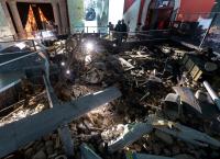 На входе в музей посетителей встречает диорама, изображающая ожесточенные битвы за Артемовск (Бахмут), небольшой город на востоке Украины. Свидетелем тех событий был наш первокурсник Егор Игнатенко. Отслужив по контракту, он поступил на заочное отделение факультета истории, управления и сервиса. Глазами Егора «нарисована» эта картина: разрушенные пятиэтажки, брошенная военная техника, вспаханная снарядами земля и бойцы с раненым товарищем на носилках.