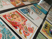 Первую видеоэкскурсию организаторы решили посвятить Международному женскому дню. Выставка под названием «Ода женщине» предлагает вниманию посетителей редкие открытки, значки, а также книги из фонда библиотеки и личного архива Александра Денисова.