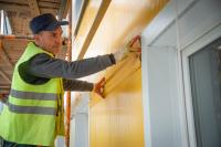 В доме № 22, расположенном в микрорайоне 1 города Озёры, строители проводят работы по капитальному ремонту фасада.