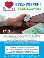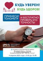 Акция состоится в пятницу, 4 апреля, с 9.00 до 15.00 по адресу Коломна, улица Октябрьской революции, дом 347. Приносите свой тонометр – и его протестируют специалисты Коломенского филиала ФБУ «НИЦ ПМ – Ростест» Росстандарта.