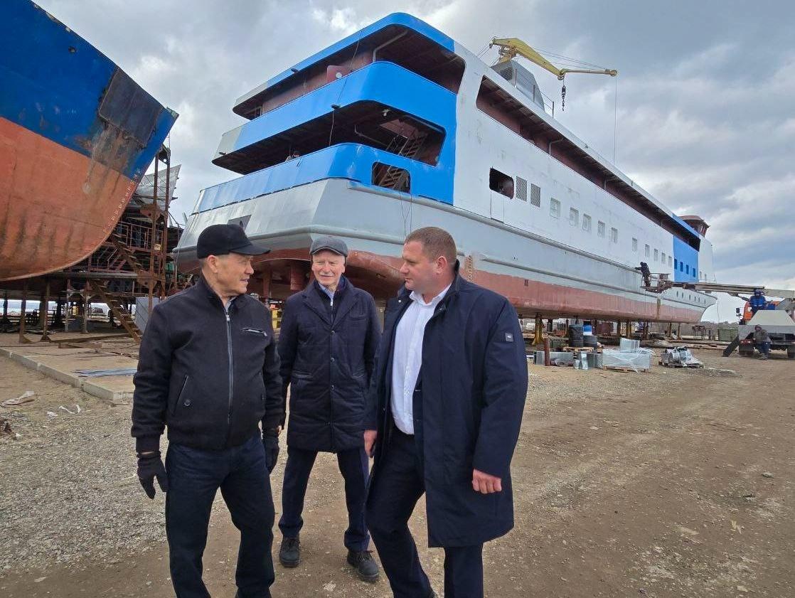 Генеральный директор АО «Порт Коломна» Владимир Алексеев провел для руководителя Коломенской больницы экскурсию по порту и показал, как ведется строительство нового судна.