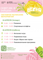 Программа выходного дня начнется с интеллект-игры — это отличная возможность повеселиться и одновременно потренировать умственные способности. После разминки для мозга стартуют подвижные игры. Затем гости смогут поучаствовать в акции «Верни имя герою», посвященной истории нашего округа и его знаменитым жителям. Завершит мероприятия развлекательная программа.