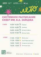 Сквер имени В. А. Зайцева (Коломна) — понедельник, 5 мая, с 15.00 до 17.00; вторник, 6 мая, с 11.00 до 13.00.