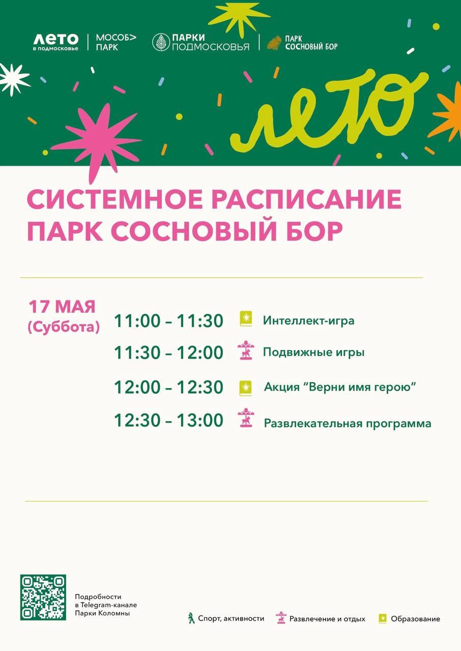 Программа выходного дня в парках по традиции начнется с интеллект-игры — это отличная возможность повеселиться потренировать умственные способности. После разминки для мозга стартуют подвижные игры. Затем гости смогут поучаствовать в акции «Верни имя герою», посвященной истории нашего округа и его знаменитым жителям. Новинкой летнего сезона-2025 станет мероприятие «Твори в парке» - все желающие попробуют свои силы в различных видах творчества, пообщаться с единомышленниками и, возможно, открыть для себя новое хобби. Завершатся мероприятия развлекательной частью.