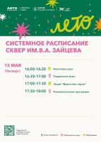 Сквер имени В. А. Зайцева (Коломна) — вторник, 13 мая, с 17.00 до 18.00; среда, 14 мая, с 15.00 до 17.00; четверг, 15 мая, с 16.00 до 18.00.