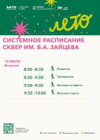 Сквер имени В. А. Зайцева (Коломна) — вторник, 15 июля, с 8.00 до 10.00; четверг, 17 июля, с 16.00 до 18.00.