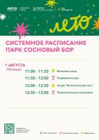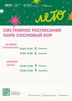 Парк «Сосновый бор» (Озёры) — понедельник, 28 июля, с 14.00 до 15.00; среда, 30 июля, с 14.00 до 15.00; пятница, 1 августа, с 11.00 до 13.00.