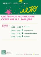 Сквер имени В. А. Зайцева (Коломна) — вторник, 29 июля, с 15.00 до 17.00; пятница, 1 августа, с 16.00 до 18.00.
