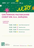 Сквер имени В. А. Зайцева (Коломна) — четверг, 7 августа, с 15.00 до 17.00; пятница, 8 августа, с 15.00 до 17.00.