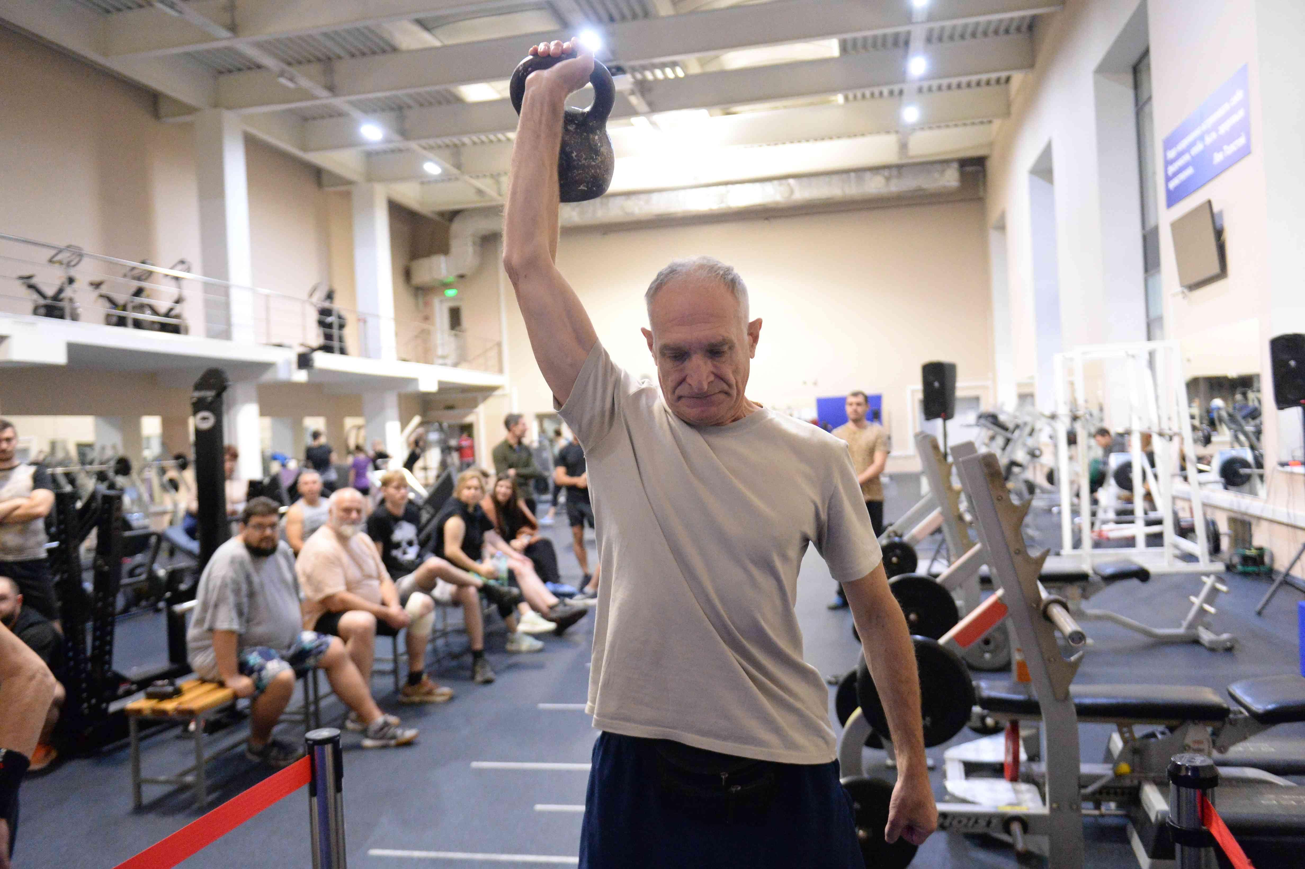 В силе и выносливости состязались 55 человек - 30 женщин и 25 мужчин. Вес штанги составил для женщин 20 кг, для мужчин до 60 лет – 24 кг, для мужчин старше 60 лет – 16 кг.