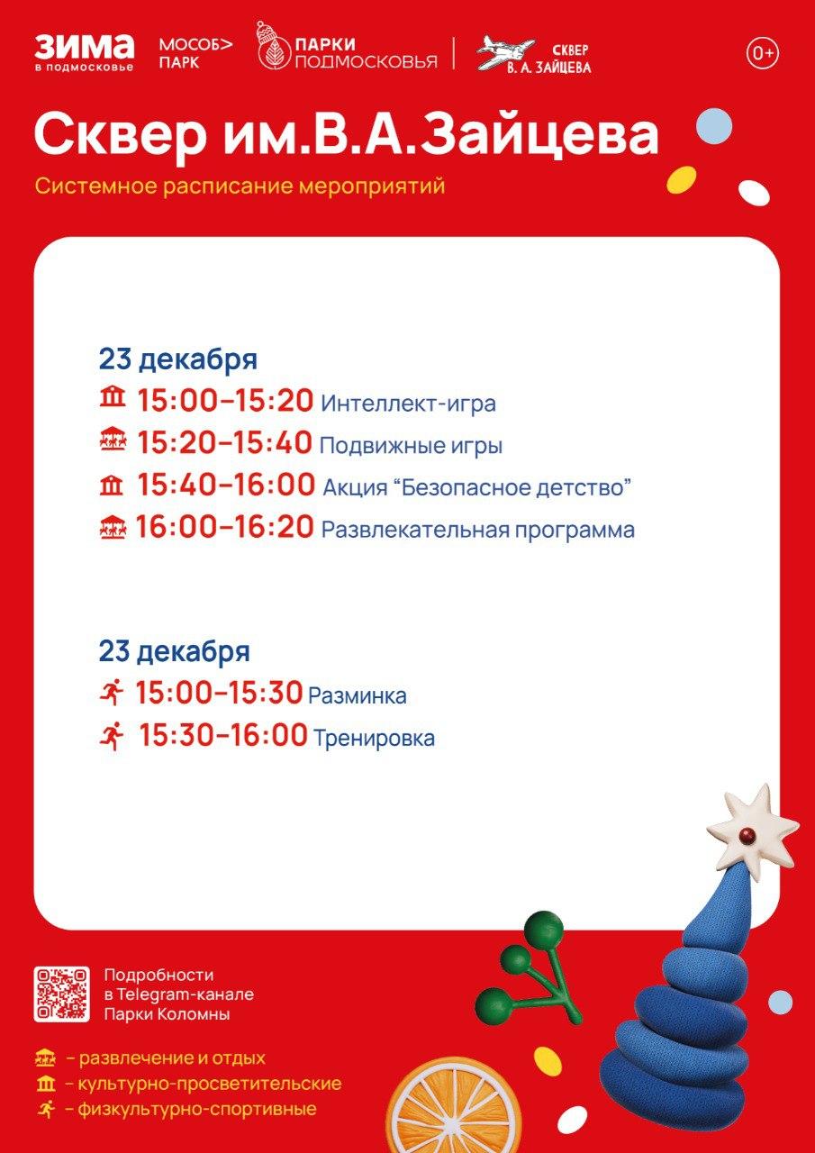 Сквер имени В. А. Зайцева (Коломна) — вторник, 23 декабря, с 15.00 до 16.20.