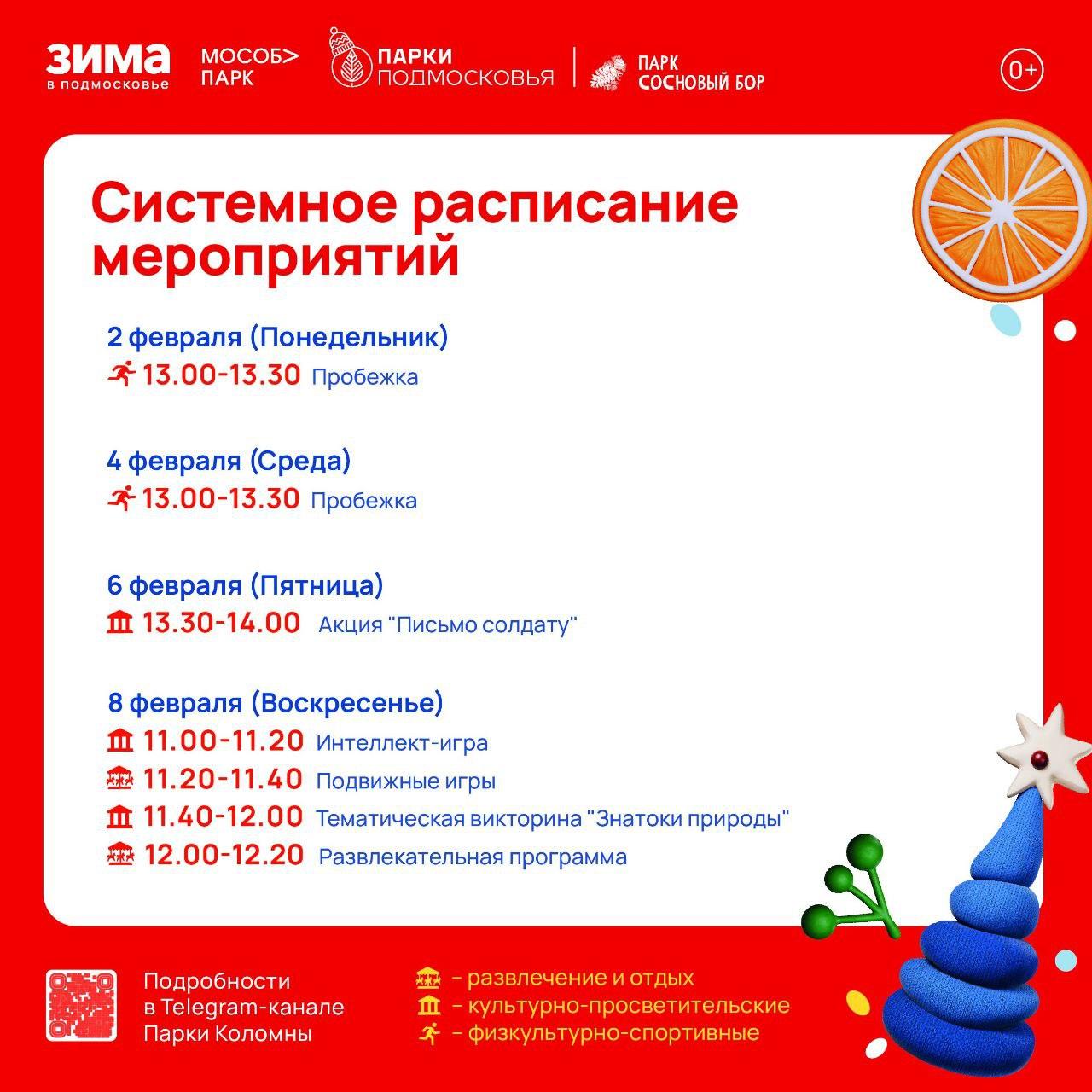 В пятницу во всех парках состоится особая акция – жители и гости муниципалитета смогут написать письмо солдату. А в воскресенье общественные пространства приглашают на тематическую программу о науке, которая включает викторины для знатоков природы, открытие лаборатории «Зимние эксперименты», подвижные игры «Птички-невелички» и многое другое.