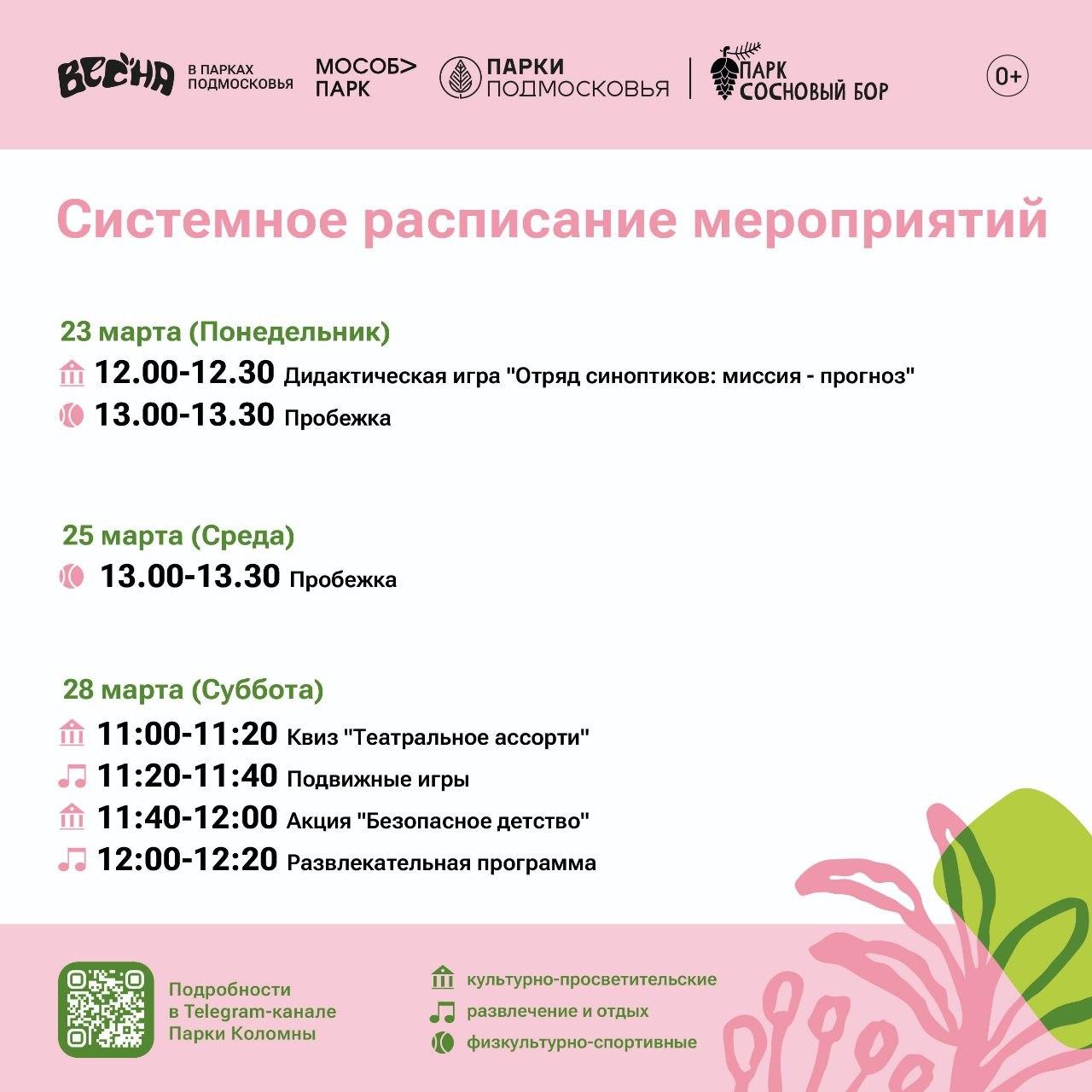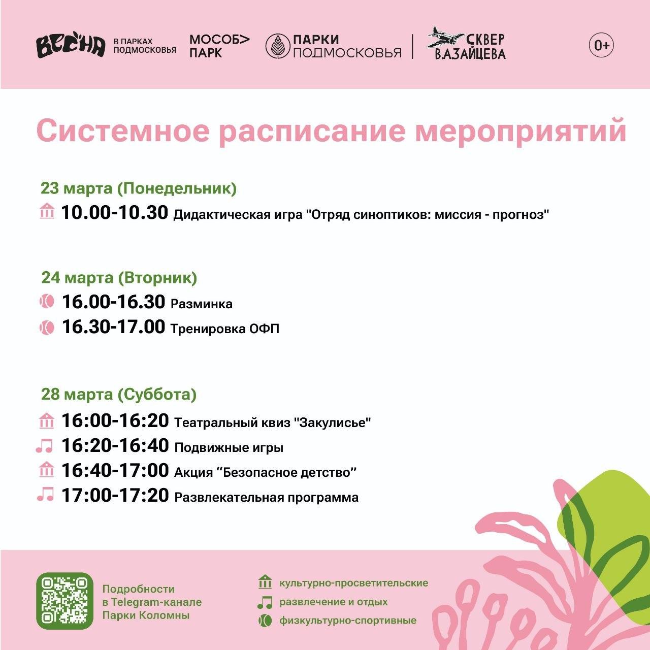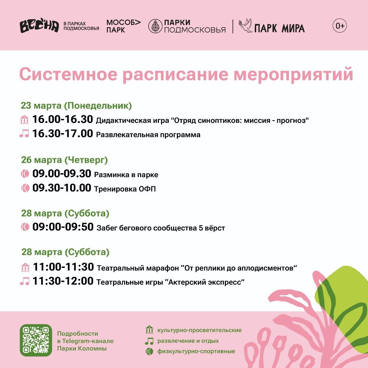 В понедельник во всех парках запланированы активности в честь Дня метеоролога: жителей приглашают на игру «Отряд синоптиков: миссия - прогноз». А в субботу на общественных пространствах в программу выходного дня добавят мероприятия ко Дню театра: марафон «От реплики до аплодисментов», квиз «Закулисье» и игру «Актерский экспресс».