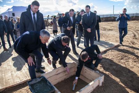 В церемонии закладки первого камня будущего мясоперерабатывающего предприятия компании «Агрофуд» приняли участие министр сельского хозяйства и продовольствия Московской области Андрей Разин, Чрезвычайный и Полномочный Посол Венгрии в Российской Федерации Норберт Конкой, Глава Коломенского городского округа Денис Лебедев, генеральный директор ООО «Агрофуд» Борис Полынский.