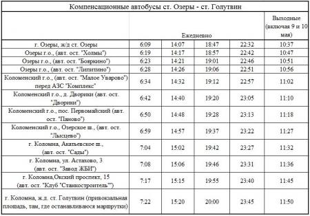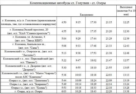 В мае на участке Голутвин-Озеры запущены компенсационные автобусы. Они курсируют до окончания технического облуживания дизель-поезда.